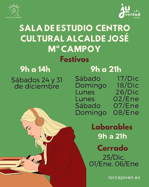 Horario en la Sala de Estudio del Centro Cultural de Lorca